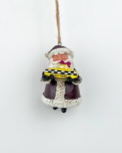 Santa Holding a Yellow Cap NYC Taxi Christmas Ornament